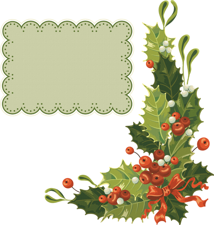 Noël : étiquette png, houx, gui_Christmas label, holly png