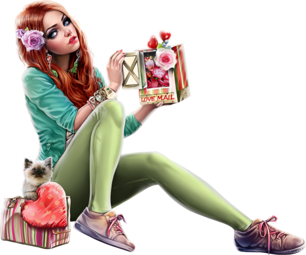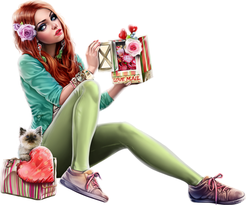 St Valentin : femme png, chat, love mail, collant vert