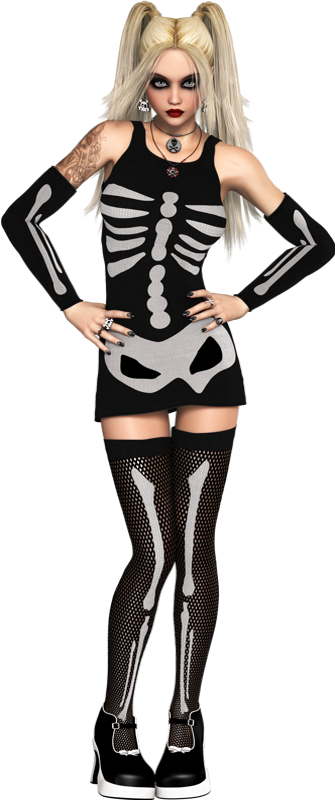 Tube femme png, déguisement d'Halloween, squelette